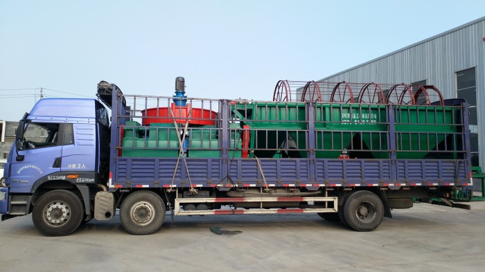 查看 > 20 2020/11由于該豬糞秸稈有機(jī)肥料生產(chǎn)線產(chǎn)量較大,因此分為多車裝置運(yùn)輸。主要的豬糞加工設(shè)備有:大型秸稈粉碎機(jī)、履帶式翻堆機(jī)、臥式攪拌機(jī)、新型三合一造粒機(jī)、不同型號的滾筒篩分機(jī)以及多個型號的烘干冷卻設(shè)備。滾筒烘干設(shè)備風(fēng)頭以及風(fēng)機(jī)安置熱風(fēng)爐以及冷卻設(shè)備多個烘干冷卻設(shè)備履帶式翻堆機(jī)以及大型秸稈粉碎機(jī)二次烘干設(shè)備滾筒篩分機(jī)以及鏟車喂料倉本次豬糞秸稈有機(jī)肥料生產(chǎn)線工藝設(shè)計(jì)流程為:利用大型秸稈粉碎機(jī)將稻草秸稈等粉碎均勻,
