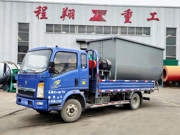 臥式攪拌機以一倉為單位,一次攪拌一倉物料,3-5分鐘完成一次攪拌過程,產(chǎn)量則根據(jù)一倉的大小來決定。下圖為程翔重工為客戶定制3米寬的臥式攪拌機,發(fā)貨到鄢陵某有機肥加工廠。
