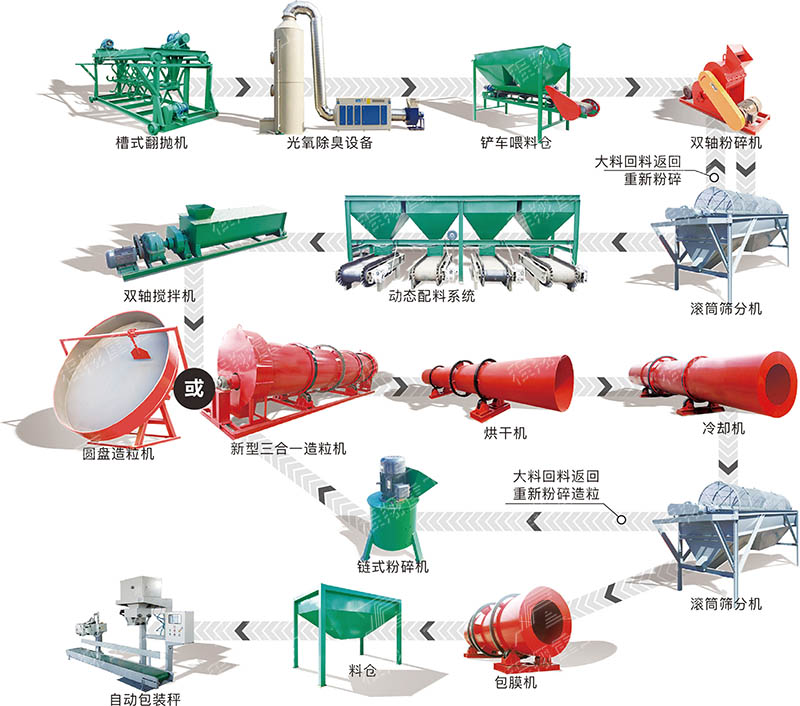 翻堆發(fā)酵設(shè)備 造粒設(shè)備 粉碎設(shè)備 攪拌設(shè)備 烘干冷卻設(shè)備 篩分設(shè)備 配料包裝設(shè)備 輸送設(shè)備 解決方案