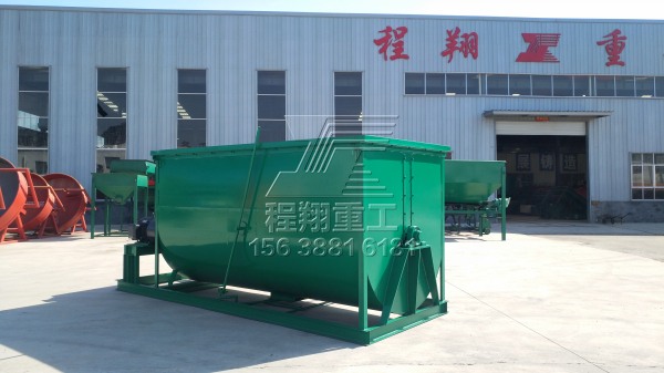 3、混合攪拌:將配好的原料攪拌均勻提高肥料顆粒整體的均勻肥效含量,采用臥式攪拌機或盤式攪拌機進(jìn)行混合攪拌;