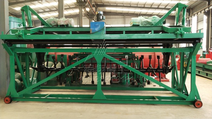 ③優(yōu)缺點(diǎn):行走式翻堆機(jī)采用翻拋齒旋轉(zhuǎn)的翻堆結(jié)構(gòu)與自動(dòng)行走系統(tǒng),翻堆時(shí)可根據(jù)料堆的深度進(jìn)行升降,因此翻堆徹底,效率高,翻堆和輸送同時(shí)完成,機(jī)器邊行走邊翻堆自動(dòng)完成全部工作過(guò)程,實(shí)現(xiàn)流水式有機(jī)肥生產(chǎn)。翻堆期間可以使用行走式翻動(dòng)翻堆機(jī),受天氣影響小、占地面積小、周期短、節(jié)省人力,一機(jī)多槽使用,處理能力強(qiáng),操作簡(jiǎn)單自動(dòng)化生產(chǎn),設(shè)備投資成本也相對(duì)較低。缺點(diǎn)是攪拌機(jī)與堆料接觸部分高速旋轉(zhuǎn)易磨損,且與糞便混合物直接接觸容易被腐蝕,需要進(jìn)行維護(hù)和更換。