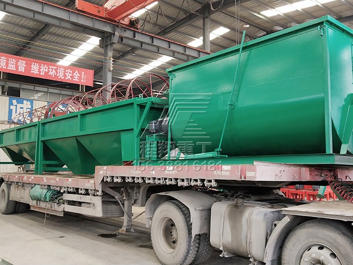 查看 > 01 2021/03本次發(fā)貨的豬糞有機(jī)肥生產(chǎn)線主要設(shè)備有:鏟車(chē)喂料、臥式攪拌機(jī)、有機(jī)肥濕法造粒機(jī)、滾筒篩分機(jī)以及烘干設(shè)備。BB肥攪拌機(jī)作為拋圓設(shè)備使用