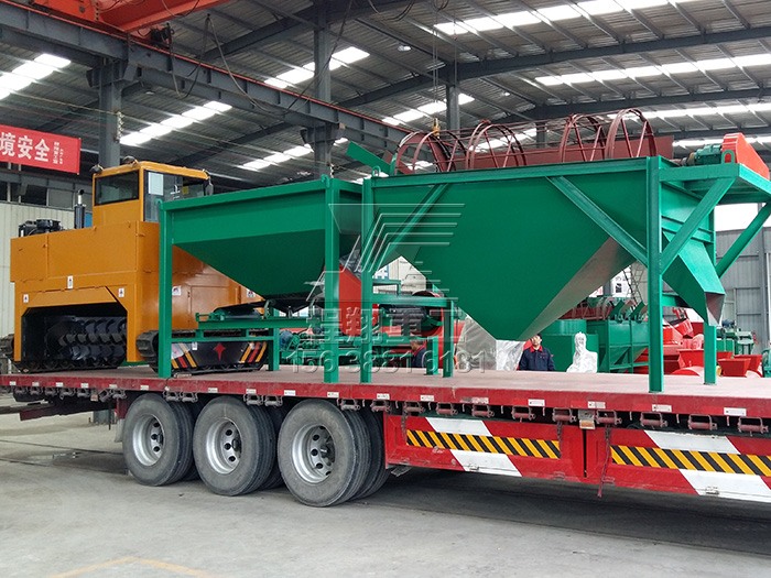 查看 > 20 2020/11由于該豬糞秸稈有機(jī)肥料生產(chǎn)線產(chǎn)量較大,因此分為多車(chē)裝置運(yùn)輸。主要的豬糞加工設(shè)備有:大型秸稈粉碎機(jī)、履帶式翻堆機(jī)、臥式攪拌機(jī)、新型三合一造粒機(jī)、不同型號(hào)的滾筒篩分機(jī)以及多個(gè)型號(hào)的烘干冷卻設(shè)備。滾筒烘干設(shè)備風(fēng)頭以及風(fēng)機(jī)安置熱風(fēng)爐以及冷卻設(shè)備多個(gè)烘干冷卻設(shè)備履帶式翻堆機(jī)以及大型秸稈粉碎機(jī)二次烘干設(shè)備滾筒篩分機(jī)以及鏟車(chē)喂料倉(cāng)本次豬糞秸稈有機(jī)肥料生產(chǎn)線工藝設(shè)計(jì)流程為:利用大型秸稈粉碎機(jī)將稻草秸稈等粉碎均勻,
