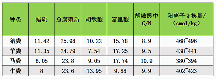 腐殖質(zhì)家畜糞的有機(jī)組成: