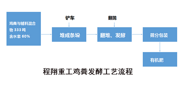 雞糞有機肥生產(chǎn)工藝路線是將濕雞糞與稻殼(或者其他原料)的混合物的含水量調(diào)到60%左右,利用生物發(fā)酵升溫殺菌,使雞糞含水率進一步降低,體積減容,達到糞便無害化處理標準要求,制得有機肥。為了加速發(fā)酵反應(yīng)的進行,可在發(fā)酵初期加入發(fā)酵菌劑,在促進堆肥升溫的同時,增加活性微生物含量。